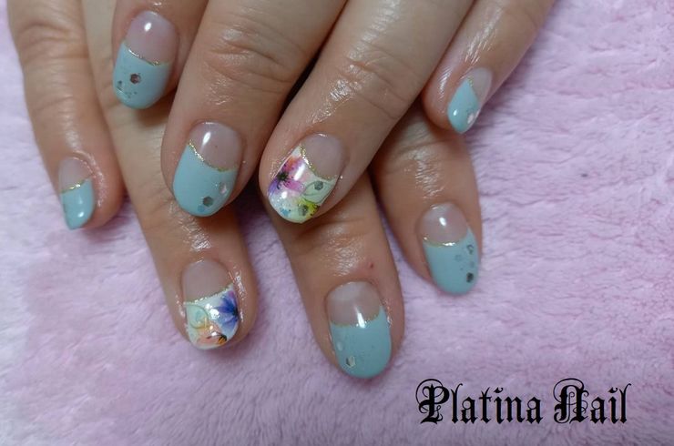 今回は、おすすめのくすみブルーカラーのネイルにちょいたし★
