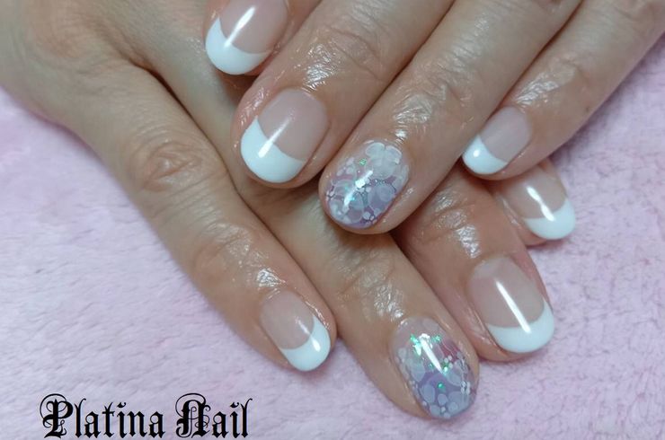 国立市 矢川・谷保 白フレンチ&シースルーフラワーネイル